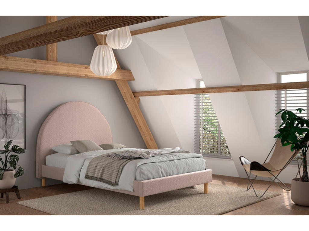 Dvoulůžková postel Moon od belgické značky Vipack oživí nejednu ložnici či dětský pokoj. Moon je vyrobena z MDF a čalouněna růžovou bouclé látkou. Bouclé látka je velice příjemná a měkoučká na dotek a dodá posteli nádech luxusu a elegance. Postel je doplněna o borovicovou podnož, která doladí design celého kousku. Minimalistický tvar postele s oblým čelem ve tvaru půlměsíce vynikne v jakémkoliv moderním interiéru.