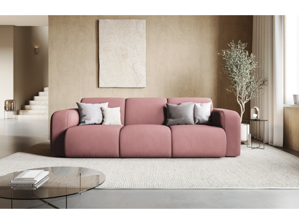 Třímístná pohovka Lola od značky Windsor & Co je výrazný kus nábytku, který v sobě spojuje jednoduchost a eleganci. O vaše pohodlí se postará čalounění ze strukturované látky v růžovém provedení, které je měkké na dotek. Látka je opatřena voděodolnou vrstvou, která představuje skvělého pomocníka pro ochranu povrchu před znečištěním. Pohovka Lola svými proporcemi nabídne nejen prostorné a pohodlné místo, ale zamilujete si také její čisté linie a nadčasový vzhled. Pro sjednocení vašeho sedacího koutu doporučujeme pohovku doplnit také stylovým křeslem či podnožkami ze stejnojmenné série. Všechny produkty nabízíme v několika barvách. Odpočiňte si a relaxujte ve stylu!