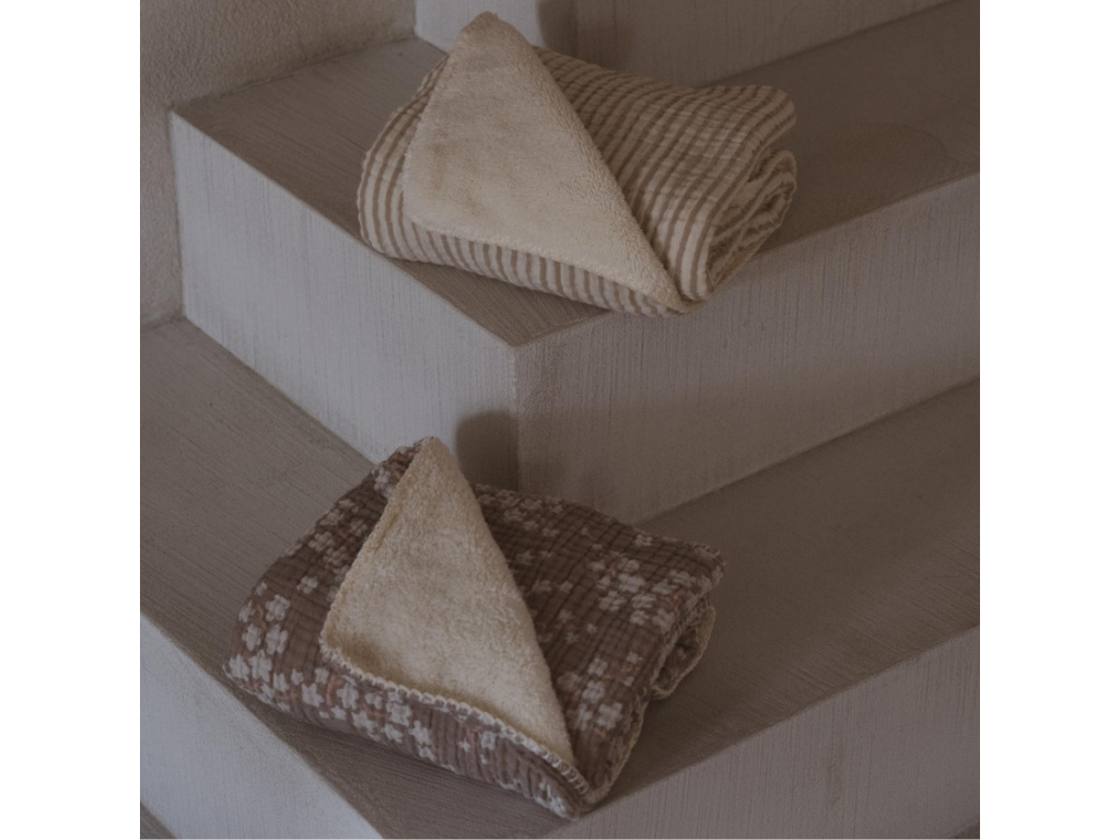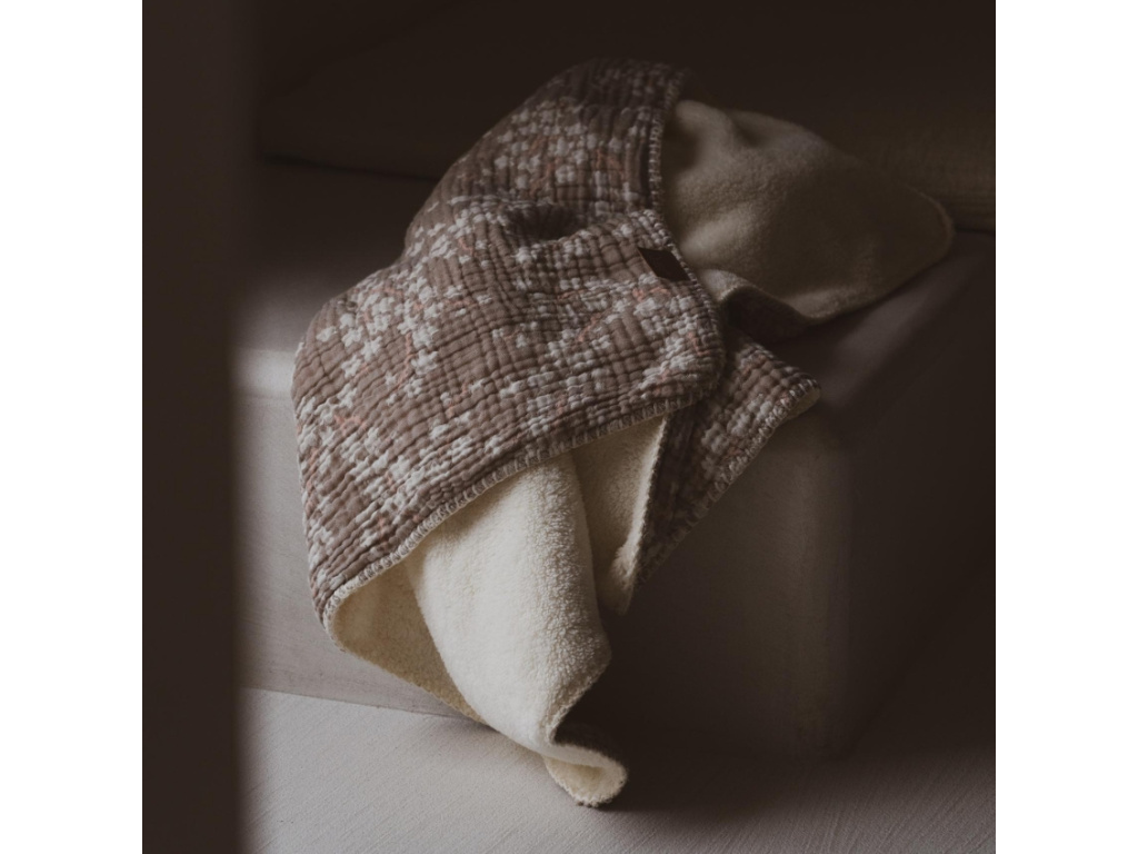 Dětská deka z kolekce Natural nabízí jemné objetí a pocit bezpečí pro vaše miminko od prvního dne. Z jedné strany je vyrobena ze 100% prémiové mušelínové bavlny s jemným květinovým vzorem, z druhé strany ji tvoří hebký plyšový materiál, který krásně zahřeje. Její ideální velikost umožňuje miminko pohodlně zabalit doma i na cestách, a díky snadné údržbě při praní na 30 °C bude vždy připravena k použití. Doporučujeme ji kombinovat s dalšími kousky z řady Natural pro dokonale sladěný vzhled.
