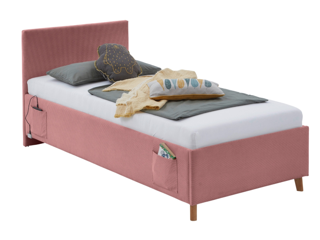 Stylová postel Cool s manšestrovým čalouněním je skvělou volbou pro dětské i studentské pokoje. Na jejím boku najdete prostorné kapsy, do kterých se vejde vše, co bude potřeba mít před spaním po ruce – knížka, časopis, herní konzole i drobné hračky či brýle na čtení. Dalším praktickým detailem je zabudovaný výstup pro USB i USB-C, díky kterému je možné nabíjet telefon, MP3 přehrávač nebo třeba hodinky. Postel Cool je navíc dostupná ve čtyřech barvách, ze kterých si vyberou kluci i holky. K dostání je také varianta s čalouněným bočním panelem.