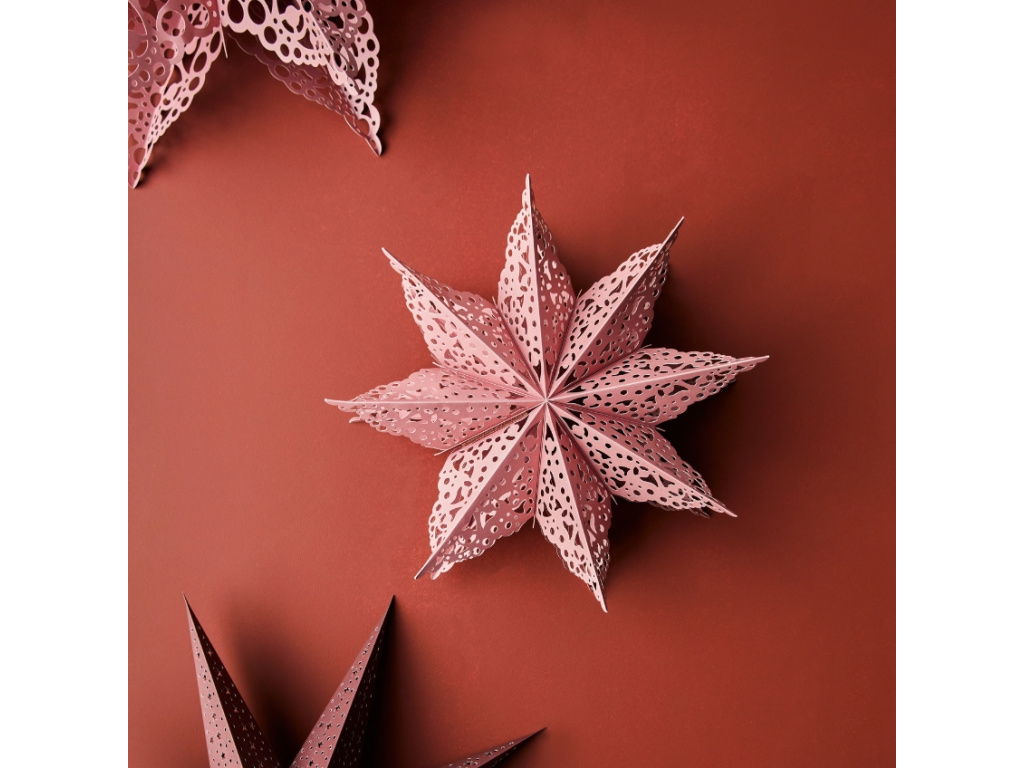 Papírové hvězdy neodmyslitelně patří k Vánocům – značka House Doctor však přichází s nevšední barevností, se kterou ozvláštníte kteroukoli část vašeho domova. Její decentní odstín růžové a propracované výřezy rozehrají slavnostní atmosféru, ať už ji pověsíte do okna, na zeď nebo na dveře. Zkombinovat ji můžete s větší verzí pro dokonale sladěnou dekoraci.