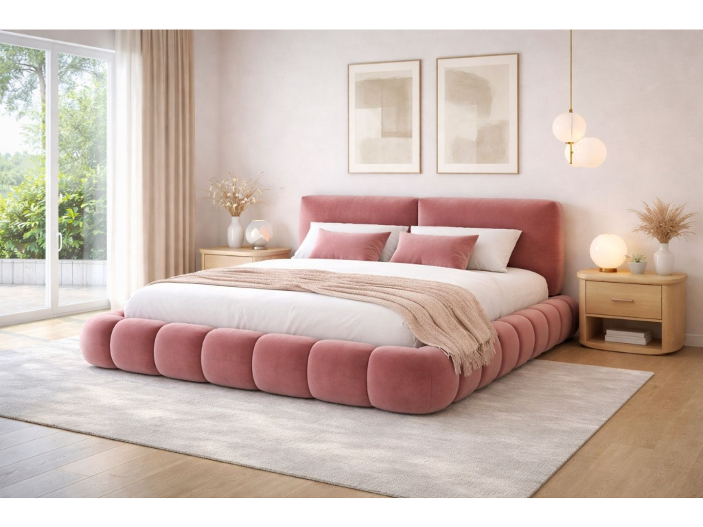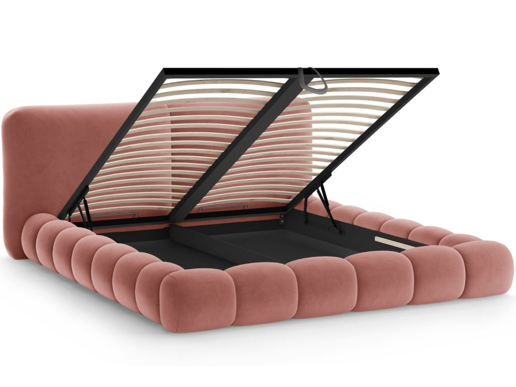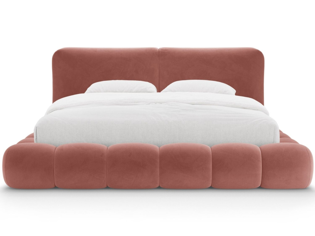 Postel Solange vnese do ložnice klidnou, moderní atmosféru a pocit příjemného pohodlí. Jemně zaoblené čelo poskytuje pohodlnou oporu při čtení i odpočinku a měkce čalouněný rám působí útulně a přirozeně. Stabilní konstrukce zajišťuje pevnou oporu matrace a pod lůžkem se nachází praktický úložný prostor pro ložní prádlo nebo textilie, ke kterému se snadno dostanete nadzvednutím roštu. Sametová látka je hebká na dotek, jemně se leskne a dodává posteli elegantní vzhled, přitom je odolná a vhodná i do domácností s mazlíčky. Postel Solange je dostupná v několika barevných provedeních a skvěle se kombinuje s jednoduchým konferenčním stolkem nebo designovou lampou, které dotvoří harmonický vzhled ložnice.