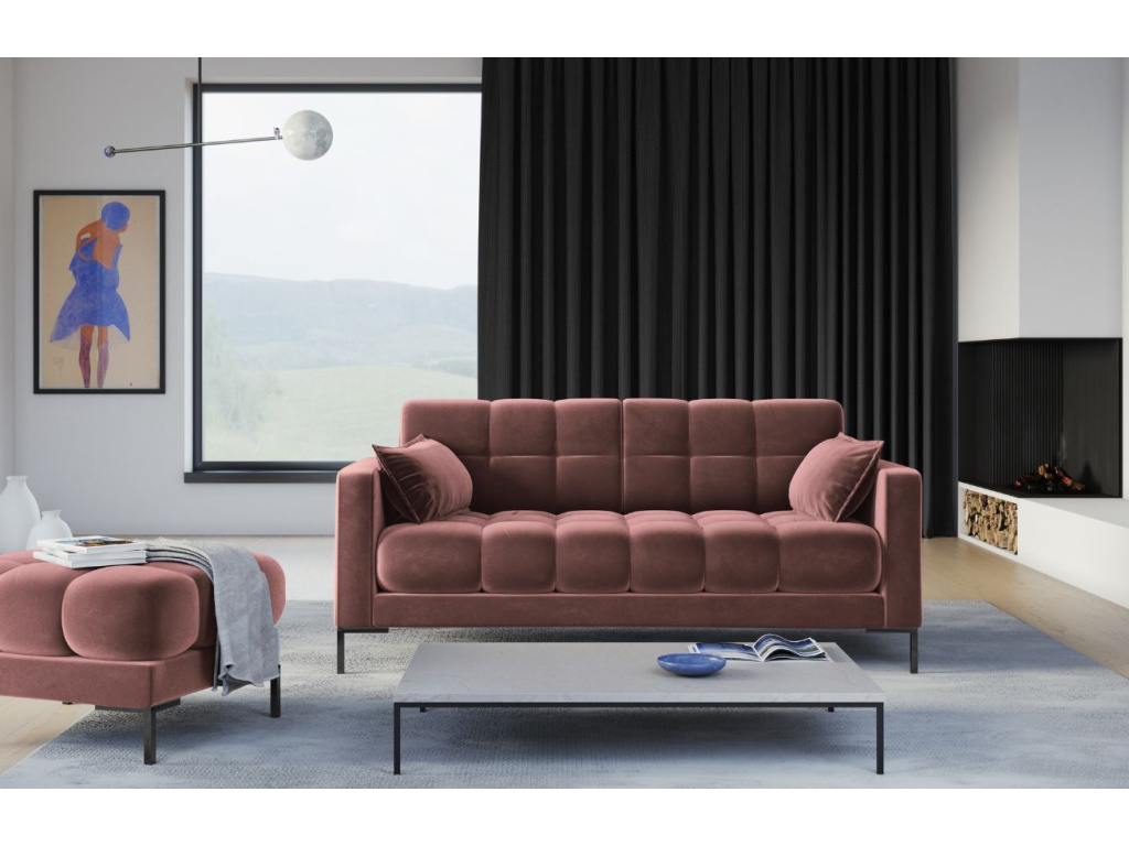 Elegantní dvoumístná pohovka Mamaia od značky MICADONI, která zaujme na první pohled svým nadýchaným vzhledem. Velmi příjemné sametové čalounění a černá kovová podnož vytváří kontrast, který interiéru dodá elegantní vzhled a nádech luxusu. Díky zajímavému prošívání vzniká jemný design, který do vašeho domova vnese lehkost a styl. Opěrné polštářky zvednou úroveň vašeho odpočinku o stupeň výš. Nechte se obklopit komfortem ve společnosti pohovky Mamaia.