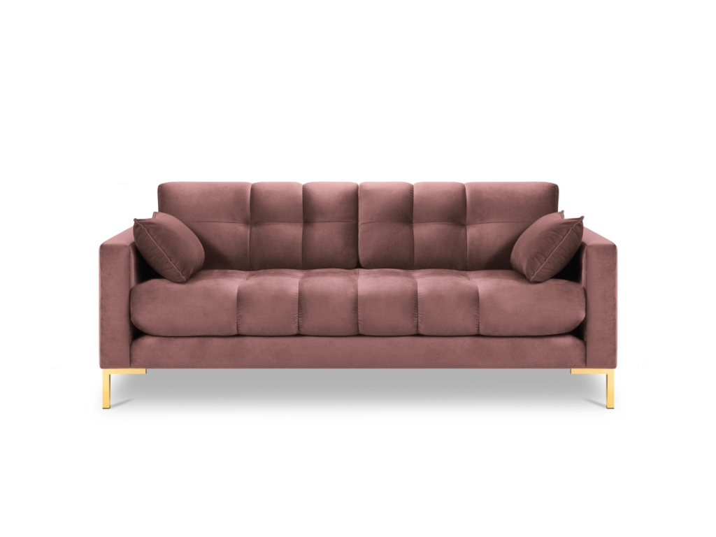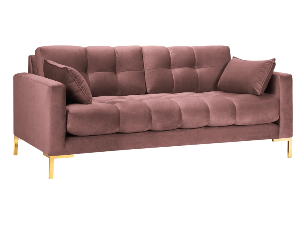 Elegantní dvoumístná pohovka MICADONI MAMAIA zaujme na první pohled svým nadýchaným vzhledem. Velmi příjemné sametové čalounění a zlatá kovová podnož vytváří kontrast, který interiéru dodá elegantní vzhled a nádech luxusu. Díky zajímavému prošívání vzniká jemný design, který do vašeho domova vnese lehkost a styl. Opěrné polštářky zvednou úroveň vašeho odpočinku o stupeň výš. Nechte se obklopit komfortem ve společnosti pohovky Mamaia.