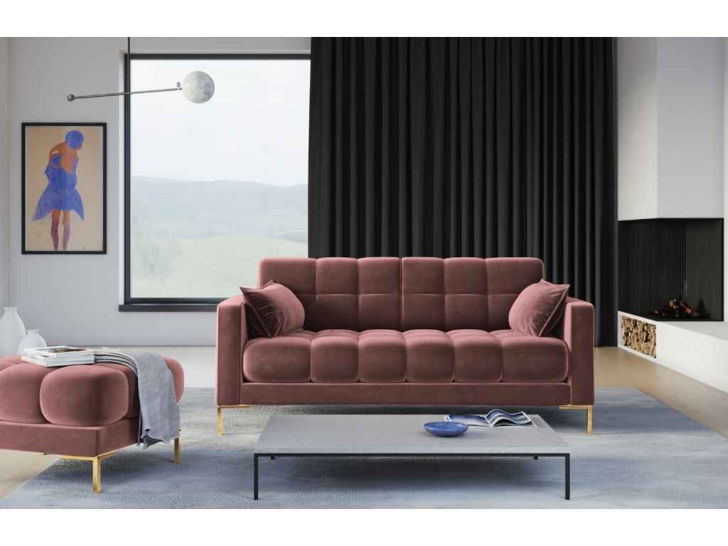 Elegantní třímístná pohovka Mamaia od značky MICADONI zaujme na první pohled svým nadýchaným vzhledem. Velmi příjemné sametové čalounění a zlatá kovová podnož vytváří kontrast, který interiéru dodá elegantní vzhled a nádech luxusu. Díky zajímavému prošívání vzniká jemný design, který do vašeho domova vnese lehkost a styl. Opěrné polštářky zvednou úroveň vašeho odpočinku o stupeň výš. Nechte se obklopit komfortem ve společnosti pohovky Mamaia.