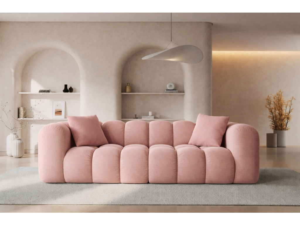 Velkolepá třímístná pohovka Halley od značky Windsor & Co zaujme charakteristickým prošíváním. Bublinkové sedáky, opěradla a područky vybízejí k nespoutané relaxaci. Pohovka je čalouněná sametovou látkou s jemným leskem v růžovém provedení, která je měkká a velice příjemná na dotek. Tkanina je velmi odolná proti oděru a absorpci tekutin, čímž zaručí dlouhodobé používání bez známek opotřebení. Látka navíc prošla cigaretovým testem, tudíž je odolná proti doutnání a vznícení. Tento skvostný kus nábytku nejen zaujme na první pohled, ale především zútulní váš interiér ve skandinávském nebo glamour stylu. Příjemným bonusem jsou elegantní polštářky, které doladí pohovku k dokonalosti. Pro sjednocení vašeho sedacího koutu doporučujeme pohovku doplnit také o podnožkou ze stejnojmenné série. Všechny produkty nabízíme v několika barvách. Odpočiňte si a relaxujte ve stylu!