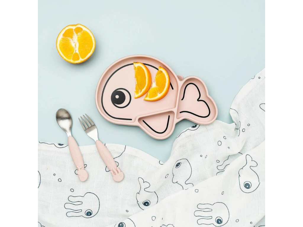 Podívám seRůžová silikonová sada příborů Done by Deer Sea friends