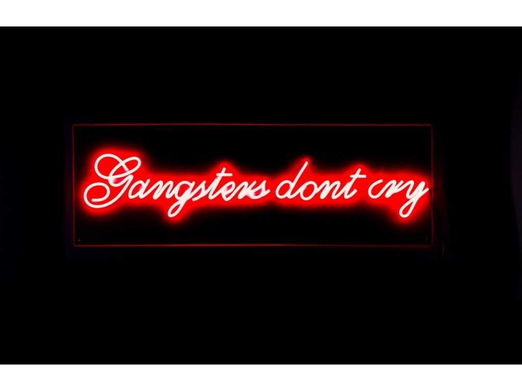 Stylová nástěnná dekorace Gangster zaujme svým originálním designem. Světelné zpracování slov "Gangsters dont cry" dodá vašemu interiéru krásu a nápaditou eleganci. Celý nápis je na průhledné akrylové desce. Prázdná stěna vás již nemusí tížit - vyzdobte ji růžovou dekorací Gangster!