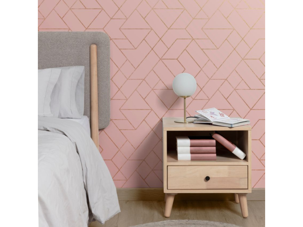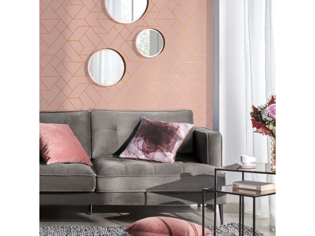 Růžová tapeta Gea se zlatými geometrickými tvary představuje skvělý způsob, jak v místnosti nechat vyniknout jednu ze zdí a dodat tak interiéru šmrnc. Díky omyvatelnému povrchu se snadno udržuje v čistotě a nemusíte se tak bát ji použít také v domácnostech s dětmi nebo domácími mazlíčky. Skvěle se hodí především do interiérů vybavených v retro stylu. Dostupná je také v šedé barvě.