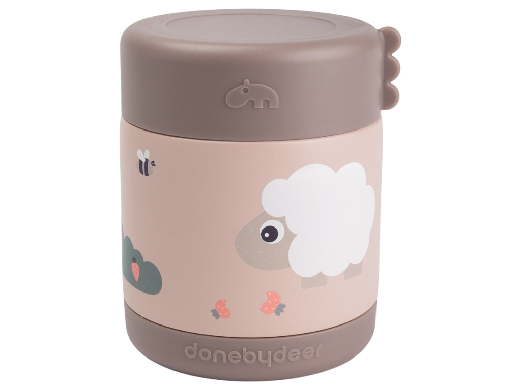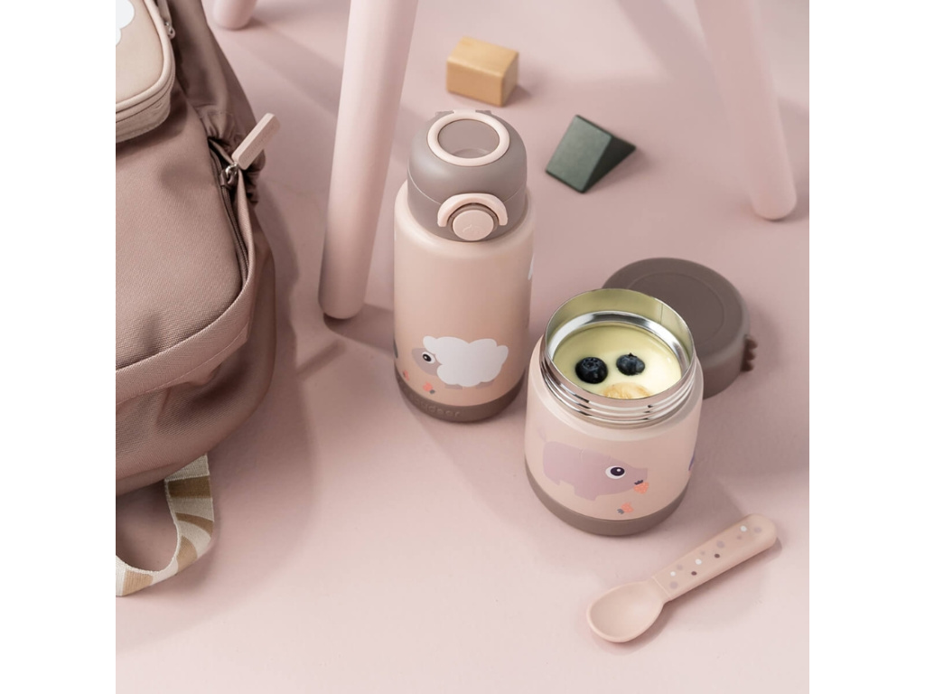 Dětská termonádoba Done by Deer z kolekce Tiny Farm v růžovém odstínu je přesně tím kouskem, který se stane nedílnou součástí každé výpravy – ať už míříte do školky, na hřiště nebo na víkendový výlet. Uvnitř se ukrývá dostatek prostoru pro teplou kaši, domácí polévku i osvěžující jogurt s ovocem. Díky kvalitní nerezové oceli a důmyslné izolační vrstvě udrží jídlo teplé nebo studené až po dobu 6 hodin. Víčko je navrženo tak, aby se snadno otevíralo i dětským ručkám, ale zároveň pevně těsnilo a nic se nevylilo. Celý design zdobí oblíbení kamarádi Pigee & Sheepy. Termonádoba je nejen krásná, ale také zcela bezpečná – bez BPA a vyrobena z kvalitních, zdravotně nezávadných materiálů.