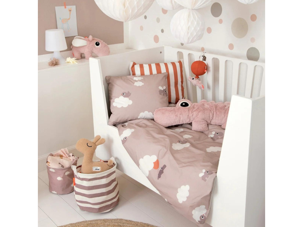 V kouzelném dětském povlečení Done by deer Happy clouds se vašemu děťátku bude spát doslova jako v bavlnce. Příjemný bavlněný materiál zajistí pohodlí a komfort a pohladí dětskou pokožku, kterou nepodráždí. Povlak na přikrývku i na polštář má praktický bezpečnostní zip YKK. Váš drobeček se bude cítit v bezpečí ve společnosti zvířátek Croca, Ozza a Birdeeho, která jej budou doprovázet do říše spánku. Bavlněné povlečení je v krásném růžovém designu se zvířátky a mráčky,  a najdete ho zabalené v malé bavlněné tašce, kterou lze využít například na hračky.
