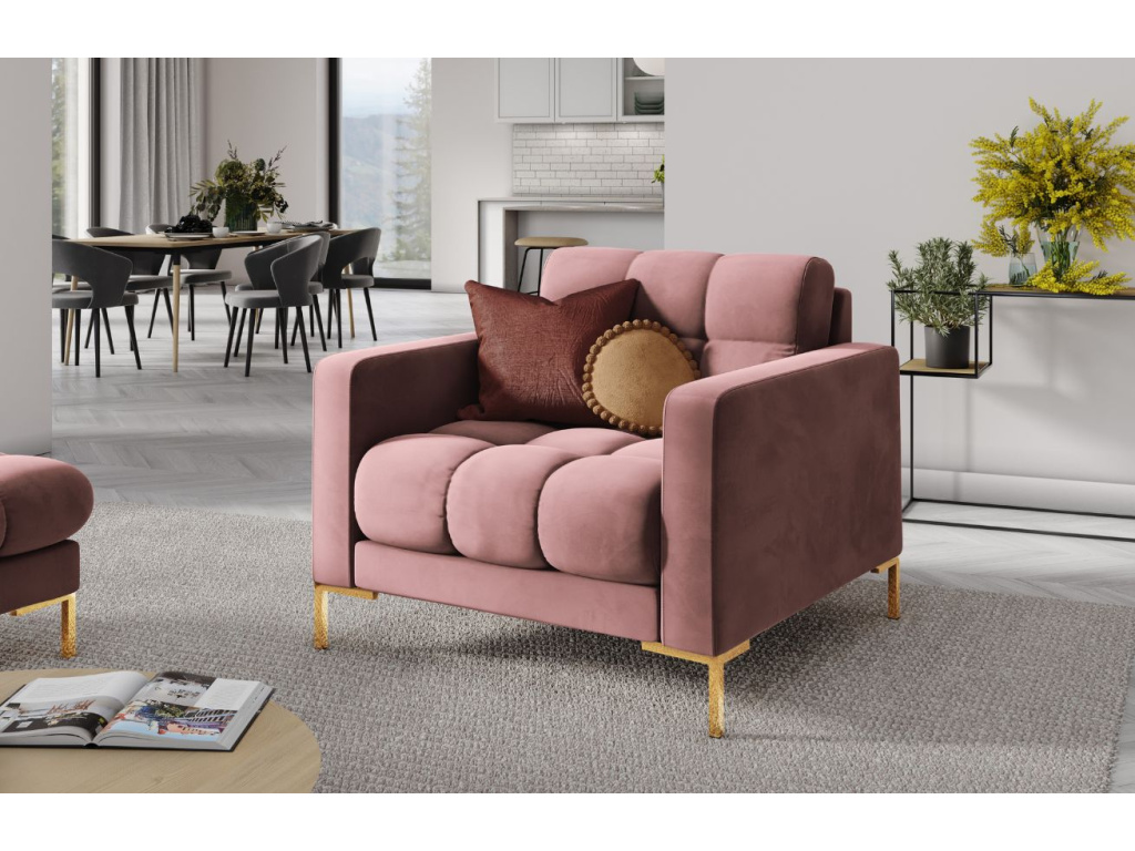 Chcete si krásně vybavit svůj domov? Křeslo Mamaia je pro to ideální volbou. Tento kus nábytku se vyznačuje jednoduchým, ale vkusným tvarem. Čalounění je vyrobeno z tkaniny imitující samet s jemným leskem, které je velmi měkké a hedvábné na dotek. Navíc se značí dobrou odolností proti oděru, díky tomu je vhodné i do komerčních prostor. Kromě estetických kvalit je křeslo také pozoruhodně pohodlné a ergonomické. Celek doplňují elegantní knoflíky na opěradle, které křeslu dodávají noblesu a stylové zakončení. Sezení je podtrženo kovovou, zlatě lakovanou podnoží. Mamaia je v nabídce v řadě barevném provedení. Vyberte si to pravé do vašeho interiéru!