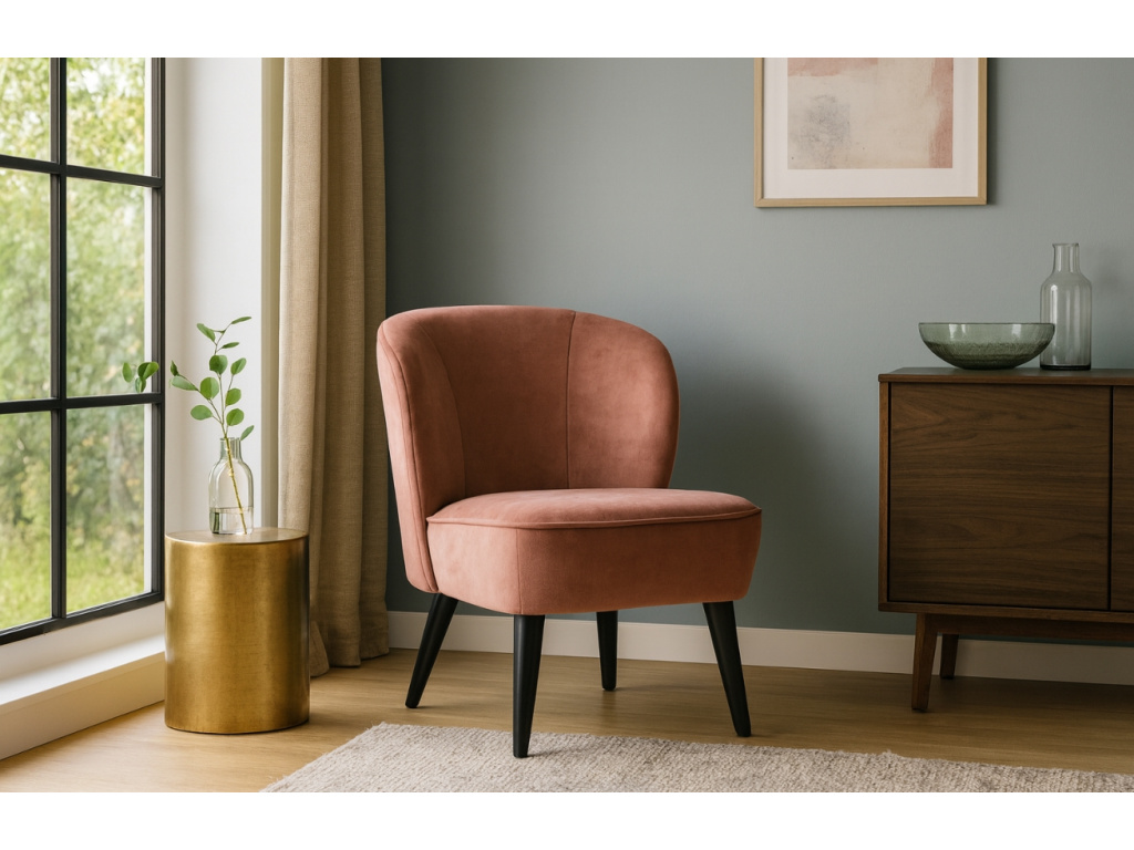 Křeslo Norma zútulní svými zaoblenými liniemi, sametovým čalouněním v odstínu starorůžové a jemnou retro atmosférou každý kout vašeho domova. Kompaktní rozměry a elegantní černá podnož z něj dělají ideální doplněk do ložnice, čtecího koutu i stylového obývacího pokoje. Díky pohodlnému sedáku a opěrce ve tvaru lastury je křeslo Norma nejen krásné na pohled, ale i mimořádně příjemné na sezení – jako stvořené pro chvíle, kdy chcete zpomalit a obklopit se pohodlím a estetikou.