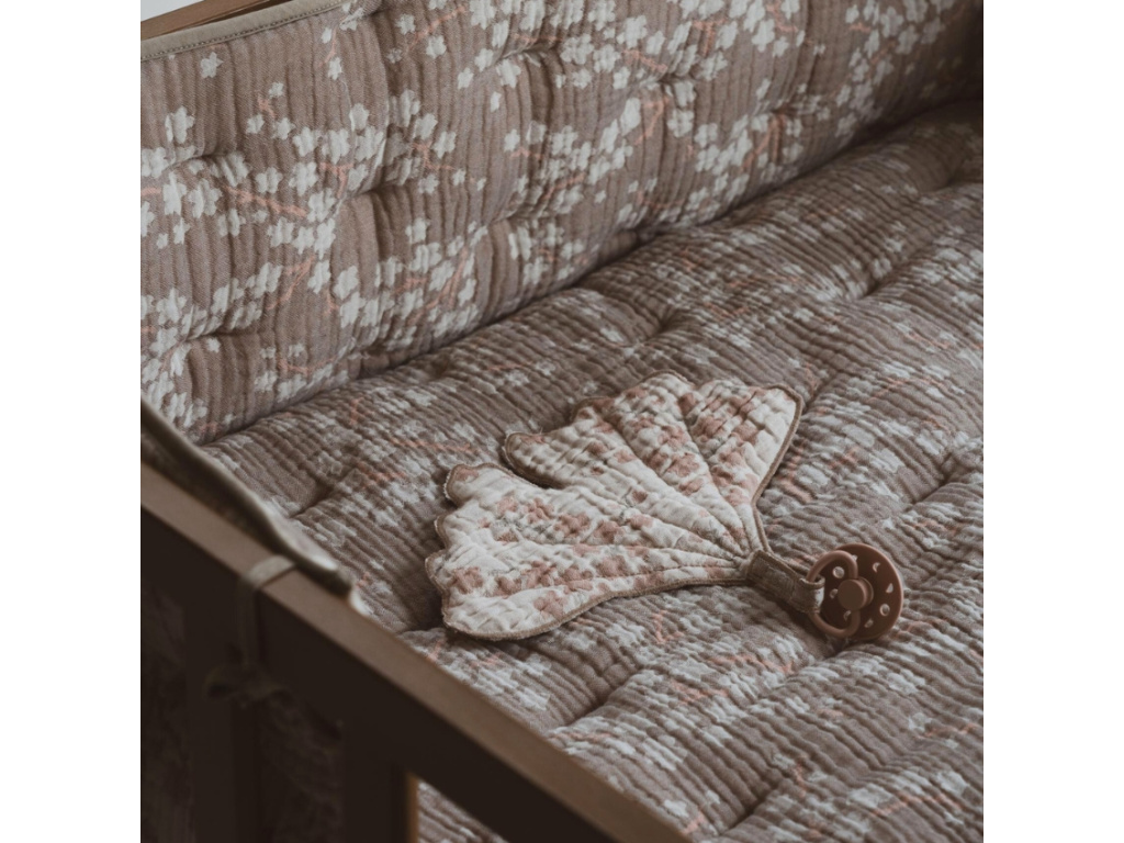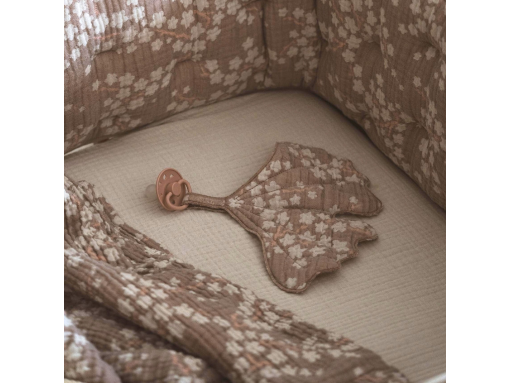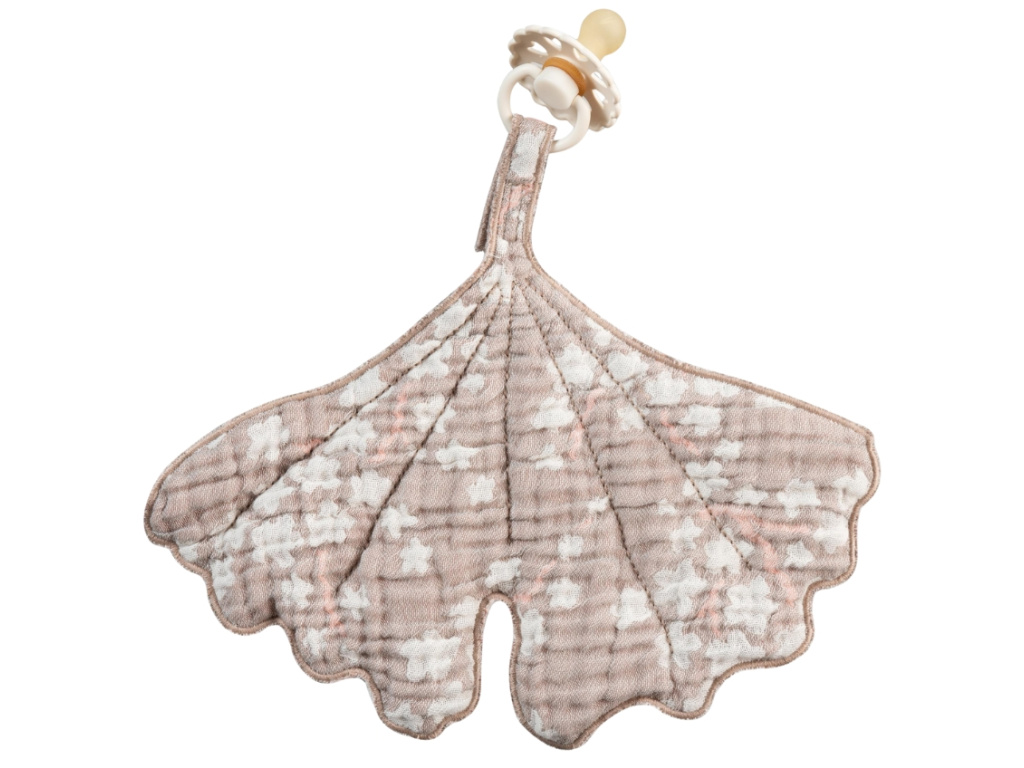 Muchláček Quax Natural tady bude pro ty nejmenší už od jejich prvních měsíců života. Oblíbí si ho k tulení a mazlení, je totiž vyrobený z měkoučké bavlny, která je velice příjemná na dotek. Látka navíc nese hrdě označení OEKOTEX, které zaručuje, že materiál byl přísně testován na škodlivé látky a splňuje nejpřísnější bezpečností standardy. Muchláček je ve tvaru lístku ginkgo biloby s jemným, květinovým vzorem a navíc na něm najdete poutko, ke kterému můžete připnout dudlík a miminko ho tak bude mít stále u sebe. Doporučujeme kombinovat s dalšími doplňky ze stejnojmenné kolekce.