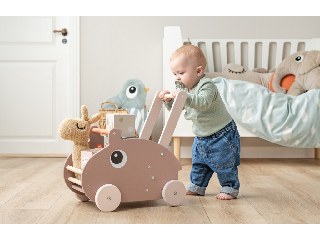Vozík Done by Deer Ozzo se stane ideálním pomocníkem pro první krůčky vašeho drobečka. Vozík na gumových kolečkách v krásném designu růžového hrošíka Ozza bude skvělým kamarádem . Měkká kolečka budou šetrná k podlaze a pevná rukojeť zajistí, aby se vozík nenakláněl. Vozík poslouží jako praktický kočárek pro panenky nebo pro přepravu oblíbených hraček po domě.