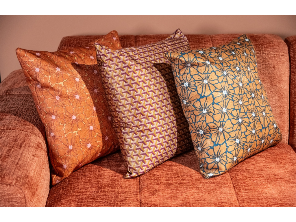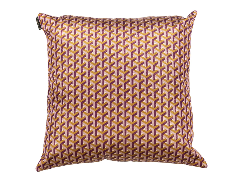 Polštář Pommelin zaujme svým výrazným geometrickým vzorem v růžových odstínech doplněných zlatavě žlutou kontrastní barvou. Tento designový kousek dodá energii a dynamiku každému retro nebo minimalistickému interiéru. Jeho textura je příjemná na dotek, takže kromě estetické funkce poskytne pohodlí při odpočinku. Díky kvalitním materiálům a zpracování je skvělým doplňkem na pohovku nebo křeslo, kde vynikne jeho osobitý vzhled.