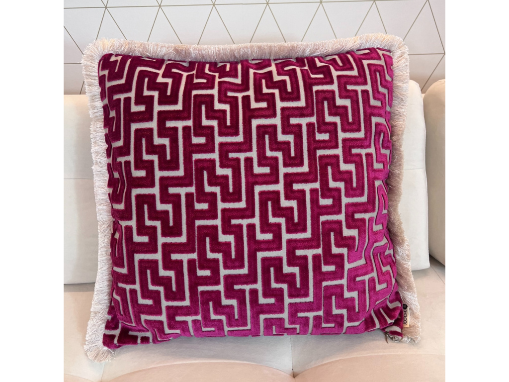Více infoRůžový sametový povlak na polštář Labyrinth 50 x 50 cm s třásněmi