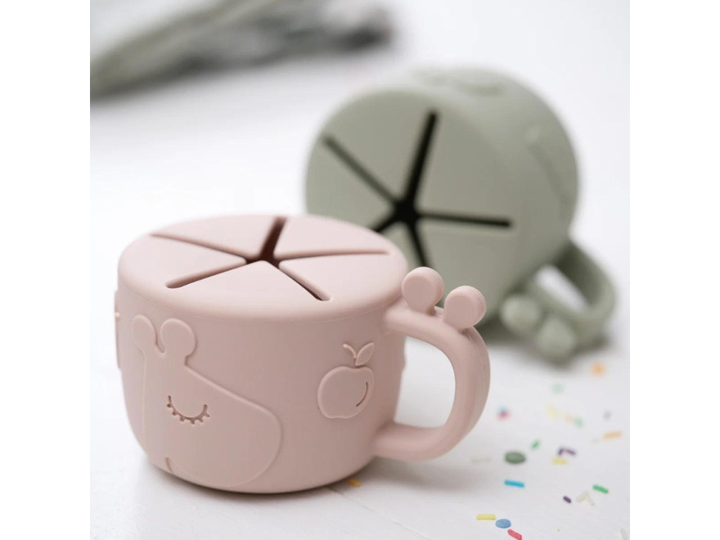 S tímto silikonovým hrnečkem budou všechny svačinky zábavné. Žirafka Raffi od Done by Deer pomůže všem malým jedlíkům, když budou mít hlad. Praktický otvor na vrchu hrnečku zajistí, že křupky ani ovoce jen tak nevypadnou. Hrneček se bude malým uličníkům dobře držet díky dobře tvarovanému oušku, které zdobí růžky žirafy Raffi. Silikonový materiál pak zajistí, že se hrneček nerozbije ani po větším pádu na zem. Na výlety nebo dětská hřiště tak bude ideálním společníkem.