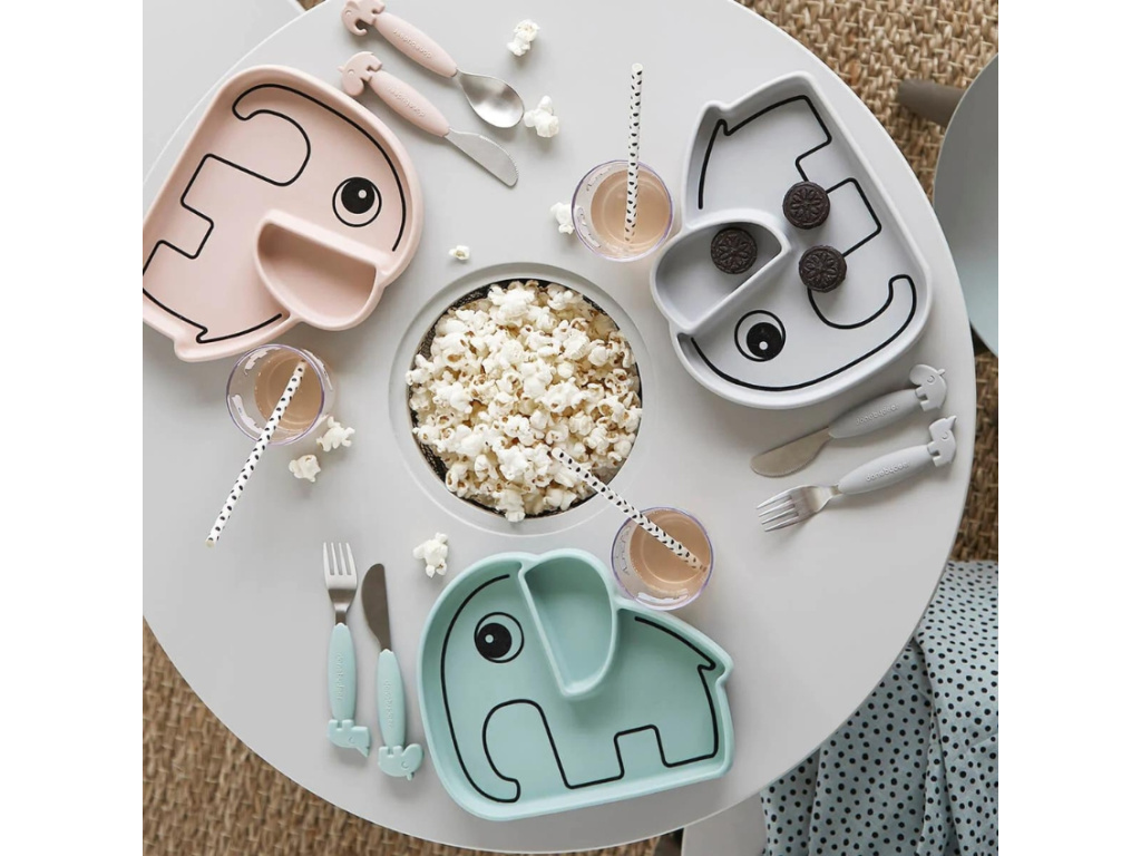 S praktickým silikonovým talířkem Elphee od Done by Deer bude jídlo zábava. Roztomilý sloník bude dělat společnost vaší ratolesti a navíc bude rozvíjet jeho motorické schopnosti. Díky silikonovému materiálu je talířek téměř nerozbitný. Praktická přísavka zespodu talířku pak zajistí, že bezpečně zůstane na svém místě a jídlo z talířku tak děti nevyklopí a talíř nepřevrátí. Pod Elpheeho uchem je umístěna klapka, kterou přísavku uvolníte.