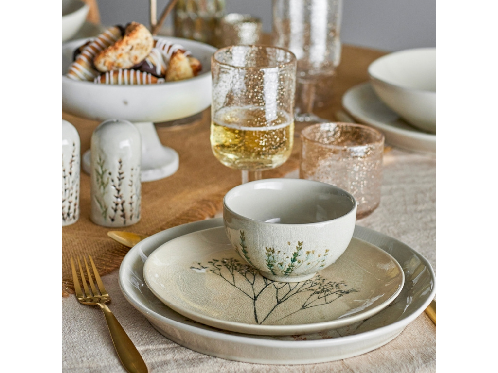 Sada nádobí Bea od Bloomingville s ručně malovaným jemným květinovým motivem je elegantním setem, který lze použít jak pro každodenní, tak pro zvláštní příležitosti. Jemný popraskaný design dodává béžovému základu správný rozměr textury. Ručně malované detaily zajišťují, že každý produkt v sérii je jedinečný a dodává prostírání osobitý nádech. Vystavte si nádobí ve vitríně nebo ho použijte pro rodinnou snídani.