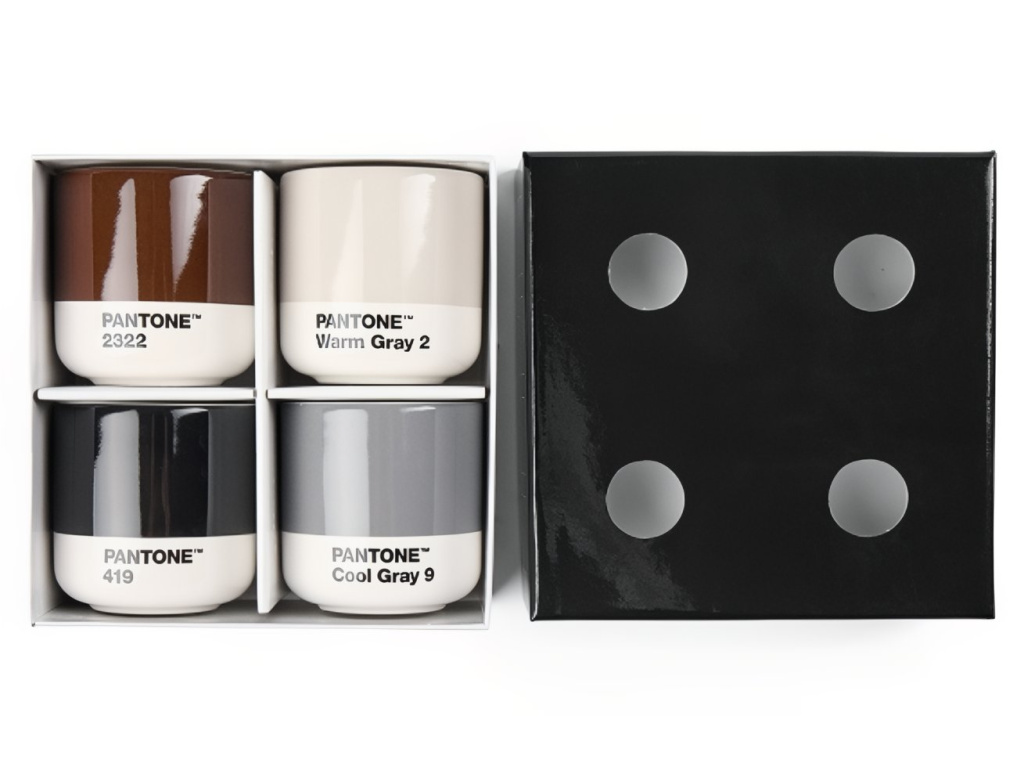 Dopřejte si lahodný šálek macchiata či espressa ve stylovém hrnku v minimalistickém designu s logem PANTONE a číslem použité PANTONE barvy! Set těchto designovek vznikl v dílně pod taktovkou designérů dánské společnosti Copenhagen Design. Hrnky o objemu 100 ml jsou vyrobené z jemného čínského porcelánu, který je vyhlášený svojí precizností a kvalitou. Se sadou hrnků v dárkové krabičce můžete udělat radost sobě i vaší blízké osobě.