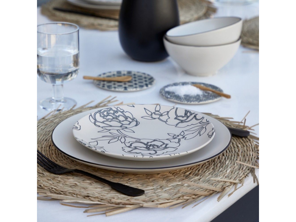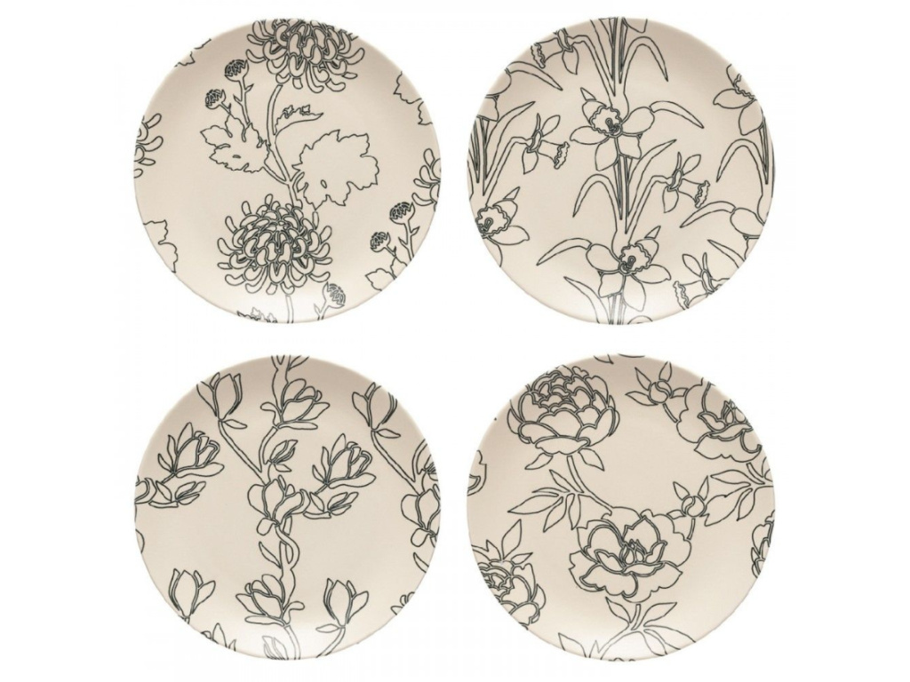 Sada čtyř kameninových dezertních talířků COSTA NOVA ze série ELEMENTS. Nádherná matná glazura s výrazným květinovým zdobením dodává nádech romantiky. Jemné černé linie působí elegantním a přesto tradičním dojmem. Toto nádobí bude skvěle ladit do minimalistického či moderního venkovského stylu.
