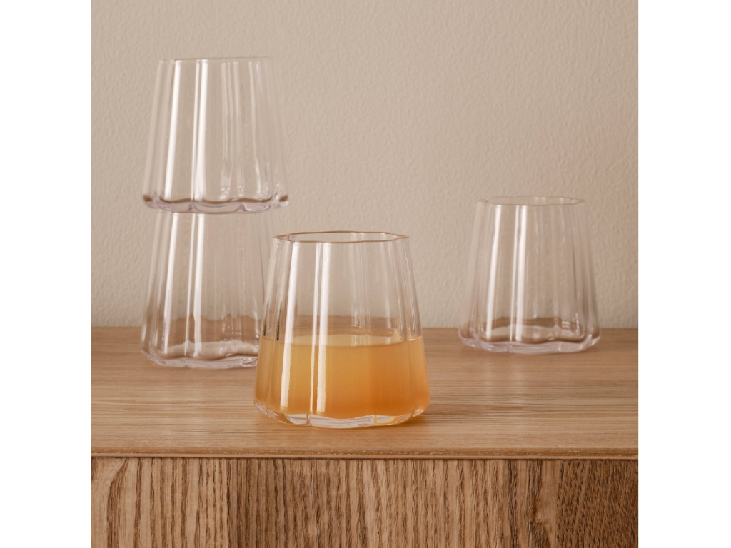 Sklenice NINA od značky Jotex jsou lehké, hravé a nečekaně okouzlující. Jemné vlnky připomínají rozkvetlý květ a v jejich tvaru se snoubí elegance s nenucenou lehkostí. Ať už si je vyberete v čiré nebo modré variantě, každá sklenice dodá vašemu stolování nádech svěžesti a radosti. V sadě najdete čtyři sklenice, které skvěle padnou do ruky a hodí se na vodu, limonádu, koktejl i víno. Jsou ideální pro letní večery na terase, slavnostní hostiny i každodenní chvíle, kdy si jen tak v klidu vychutnáváte svůj oblíbený nápoj.