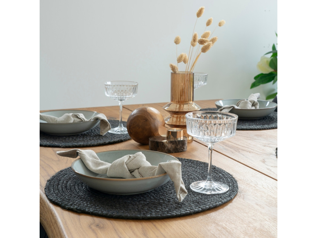 Připravte pro sebe, nebo své hosty stylový stůl se sadou prostírání Jarrad. Prostírání je vyrobeno z jutových vláken, což je přírodní materiál, který je ceněn pro svou odolnost a nenáročnou údržbu. S Jarrad nejen zabráníte poškození a zašpinění stolu, ale pozvednete vaše stolování na novou úroveň. Tmavě šedá barva prostírání vynikne i v moderně zařízeném interiéru.