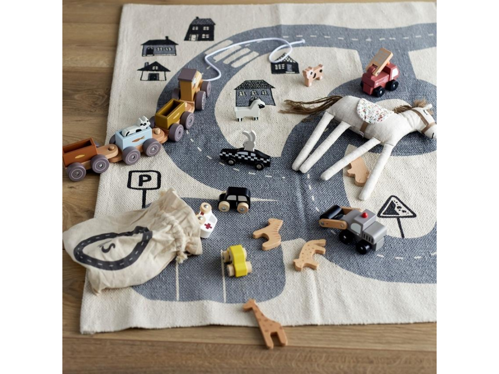 Cestovní sada malinkých autíček od značky Bloomingville se stane oblíbenou hračkou každého kluka i holky. Praktický bavlněný sáček do kterého se všechny auta schovají je nedílnou součástí celé sady. Sanitka, hasiči, taxík i další autíčka budou krásným dárkem k narozeninám.