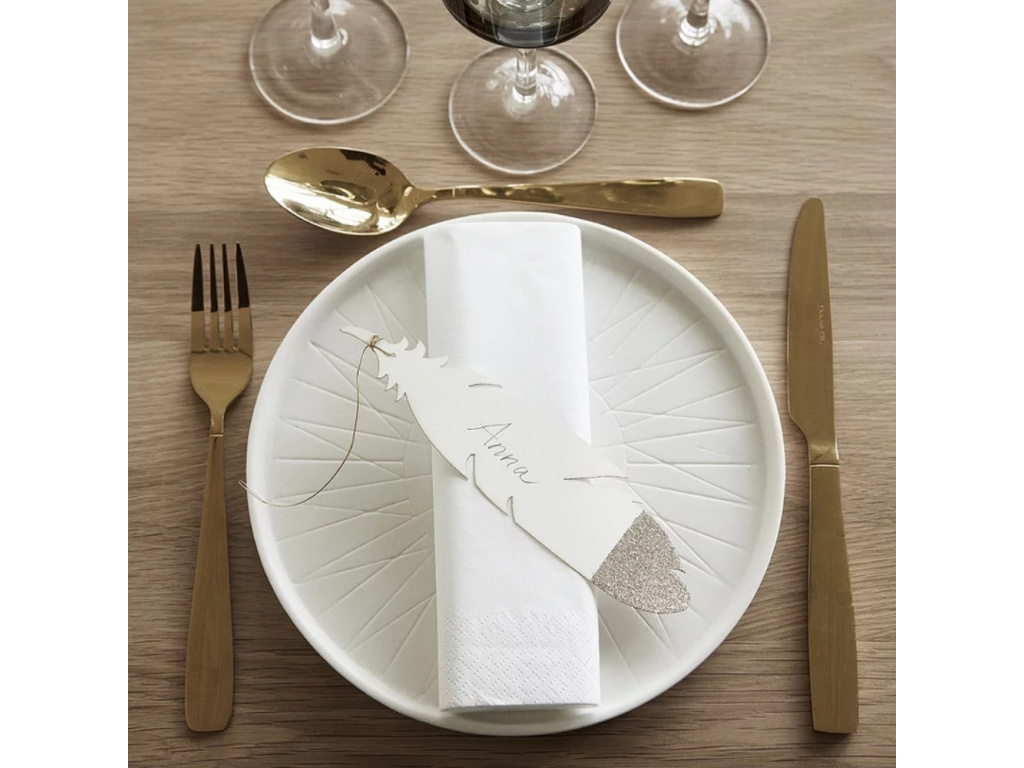 Papírová vánoční dekorace ve tvaru peříčka vnese do interiéru jemnost a lehký sváteční třpyt. Kombinace světlého tónu s decentním třpytivým detailem působí elegantně a nadčasově, takže se snadno sladí s minimalistickou i přírodně laděnou výzdobou.