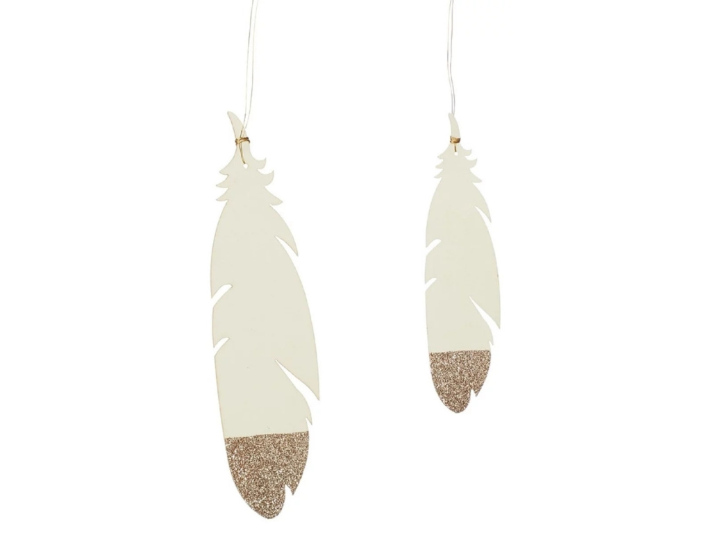 NakupovatSada dvou bílo zlatých papírových vánočních ozdob Feather