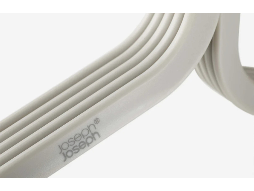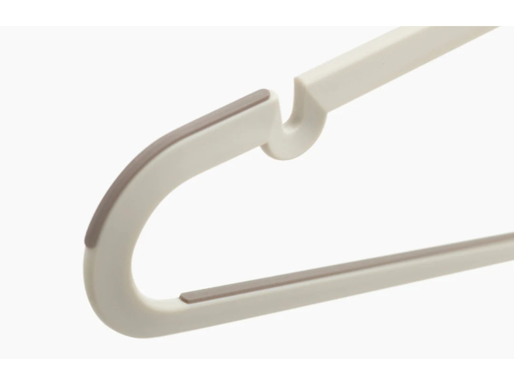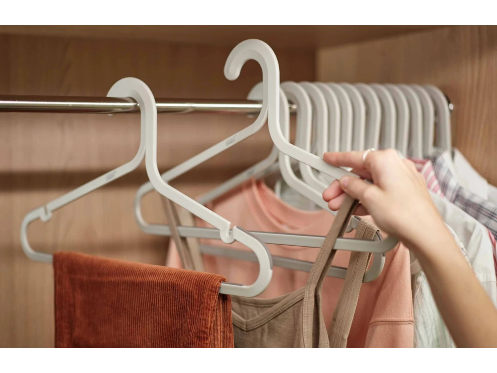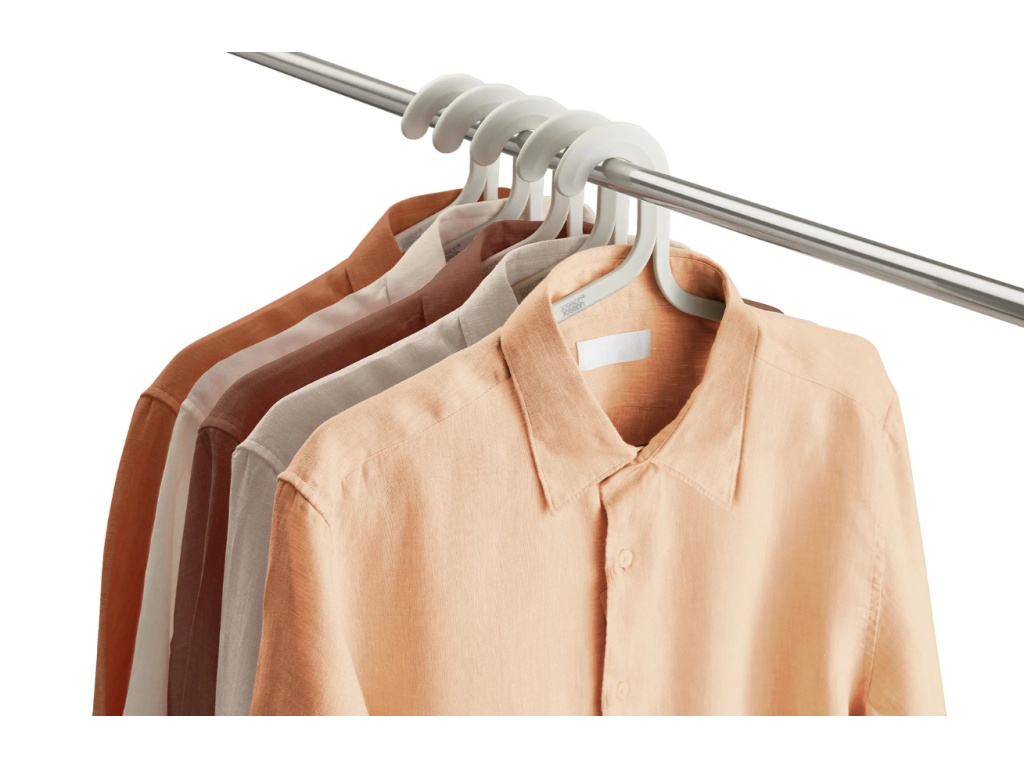 Zapomeňte na zamotaná ramínka, sklouznuté halenky a neposedné šaty. Sada ramínek Orderly od značky Joseph Joseph přináší promyšlený design, který udrží vaši skříň přehlednou, úspornou, a hlavně bez chaosu. Ramínka mají protiskluzové úchyty na ramenou i tyčce pro kalhoty, takže oblečení drží přesně tam, kde má. A díky postranním háčkům zavěsíte i šaty, sukně nebo jemné topy s ramínky bez obav, že sklouznou na zem. Ramínka jsou vyrobena z pevného plastu, který z více než 50 % pochází z recyklovaného materiálu. Díky tomu jsou lehká, odolná a zároveň šetrná k přírodě. Každý kus může mít drobné odchylky v barvě nebo textuře – malý detail, který podtrhuje jejich jedinečný a udržitelný původ.
