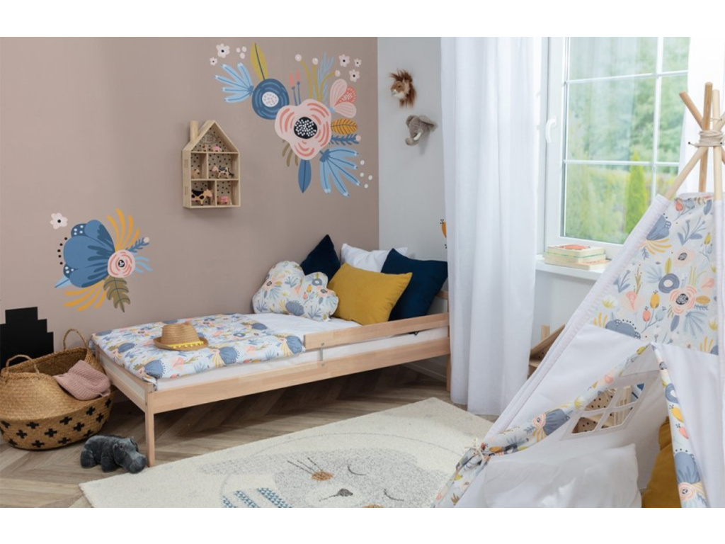 Sada samolepek na zeď Magic Flowers vám pomůže v dětském pokoji vytvořit jedinečné místo, plné lučního kvítí a barev. Originální design kouzelných květů tvoří výjimečnou dekoraci, s níž snadno ozdobíte prázdné zdi. Samolepka je zhotovena technologií Easy Dot (speciální fólie s bodovým lepidlem), díky níž je aplikace nesmírně jednoduchá. Samolepky můžete opakovaně přelepovat z místa na místo - beze strachu ze zničení povrchu nebo samolepky samotné. Na šabloně najdete velkou samolepku, která bude vypadat skvěle nalepená v rohu zdi nebo za postýlkou, 4 samolepky střední velikosti a několik desítek malých samolepek - kytiček a puntíků.