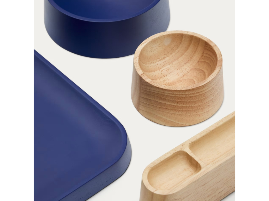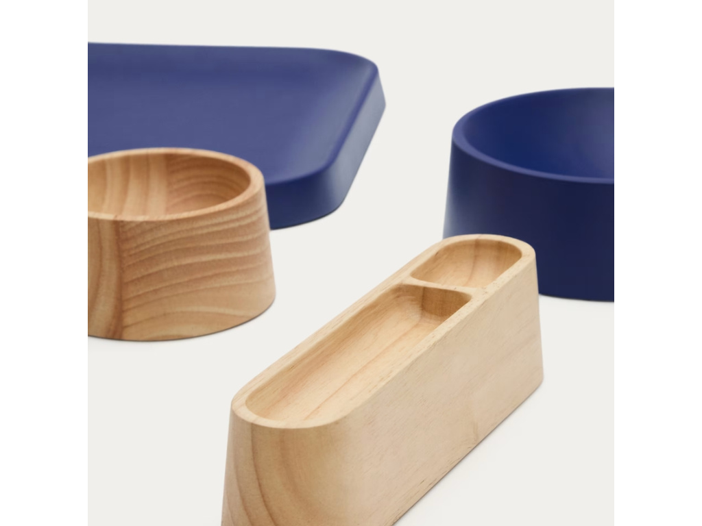 Čtyřdílná sada misek Bletz od Kave Home bude skvělým pomocníkem pro servírování drobného občerstvení. Ať už přijde návštěva, nebo jen s rodinou budete trávit večer u filmů nebo her – servírovací misky Bletz využijete na sýry, uzeniny, oříšky, sušenky, krekry a jiné pochutiny. Různé tvary, velikosti a dokonce i materiály (přírodní akátové dřevo a modře lakovaný kov), to dělá z tohoto kousku stylový doplněk, který se neztratí v žádné domácnosti.