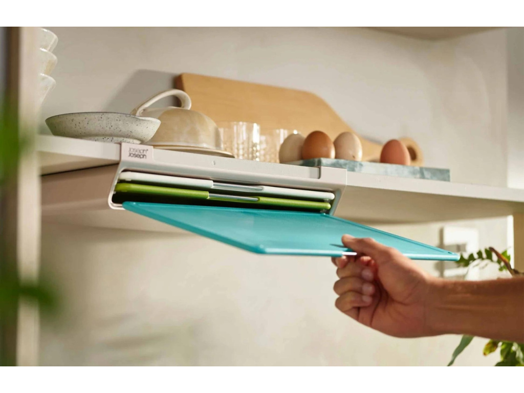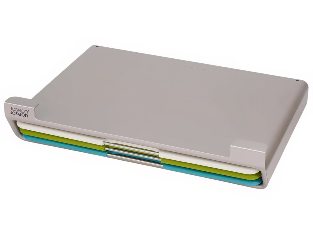 Dopřejte si pohodlné krájení se sadou prkének s pouzdrem Folio Slim Multicolour! Sada obsahuje tři barevně odlišená plastová prkénka, určená pro hygienicky oddělené krájení potravin a praktické pouzdro, které díky úchytkám snadno pověsíte na polici a ušetříte tak místo na pracovní ploše. Vyjmutí prkének ze stojanu usnadňují nerezové úchytky a protiskluzová ochrana zajistí, že vám prkénko nebude klouzat po pracovní ploše. Každé prkénko také disponuje zvýšeným okrajem prosti stékání tekutin.