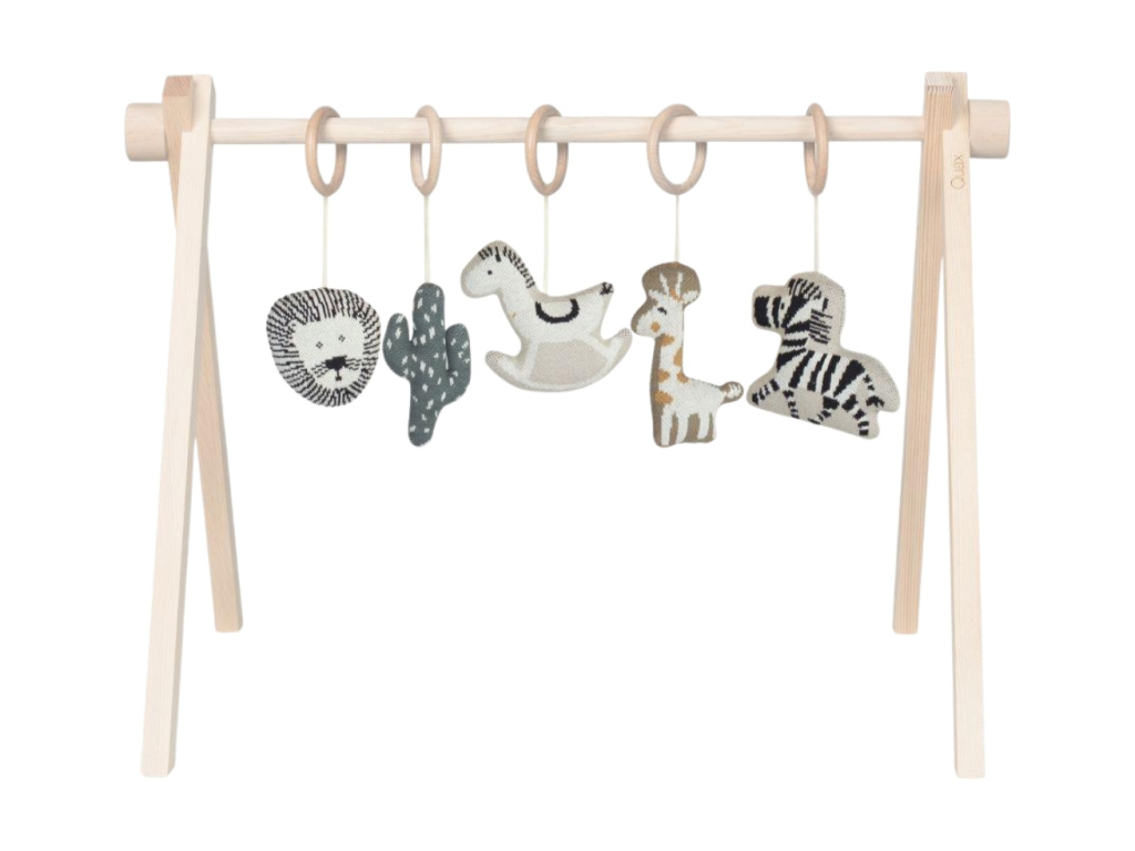 Tato sada závěsných dekorací s motivy safari je vyrobená z bezpečných materiálů vhodných pro děti v přírodních tónech, které působí klidně a harmonicky. Sada je kompatibilní s dřevěnou hrazdičkou Activity, na které se budou lehce vznášet ve vzduchu a během toho si vaše miminko bude rozvíjet zrakové vnímání. Hračky jsou také navrženy i pro samostatné použití, což vašemu dítku poskytuje pestrou škálu zábavy a objevování.