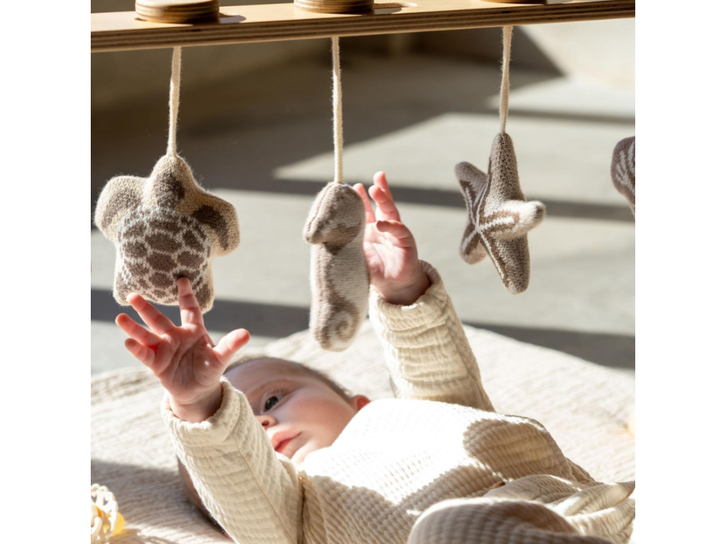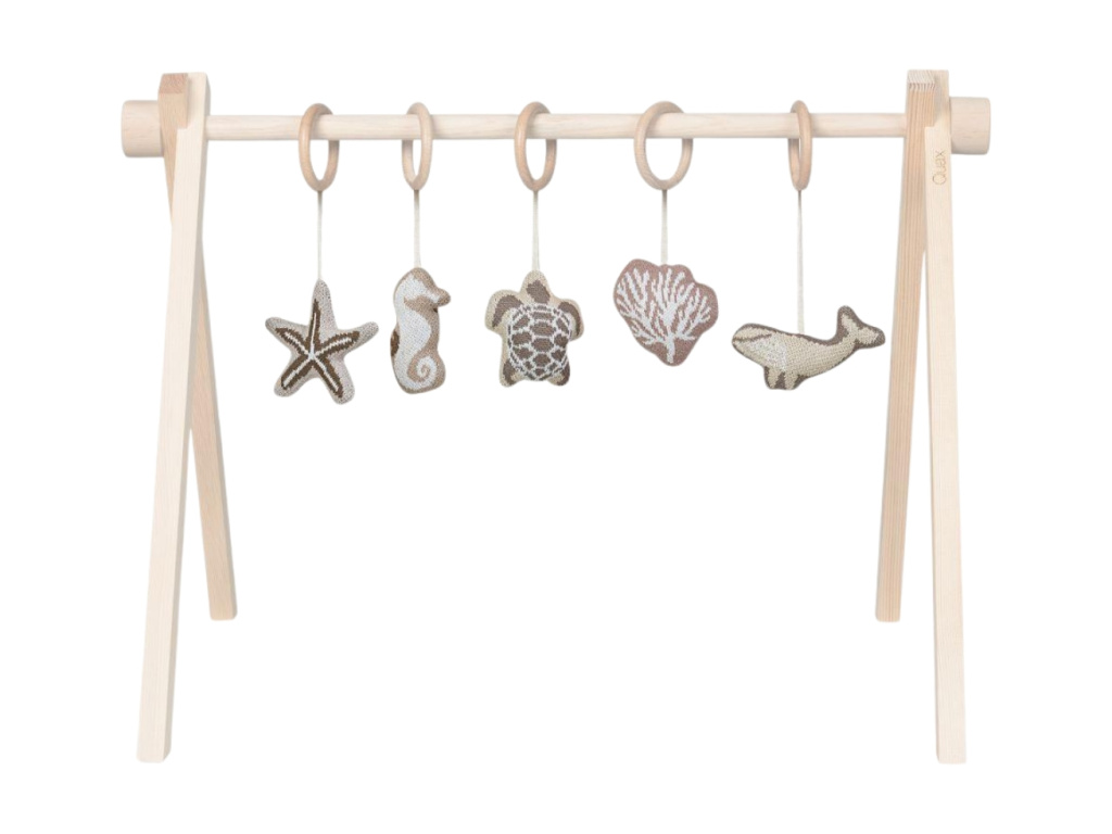 Tato sada závěsných dekorací ve tvaru mořských zvířátek a motivů je vyrobená z bezpečných materiálů vhodných pro děti v přírodních tónech, které působí klidně a harmonicky. Sada je kompatibilní s dřevěnou hrazdičkou Activity, na které se budou lehce vznášet ve vzduchu a během toho si vaše miminko bude rozvíjet zrakové vnímání. Hračky jsou také navrženy i pro samostatné použití, což vašemu dítěti poskytuje pestrou škálu zábavy a objevování.