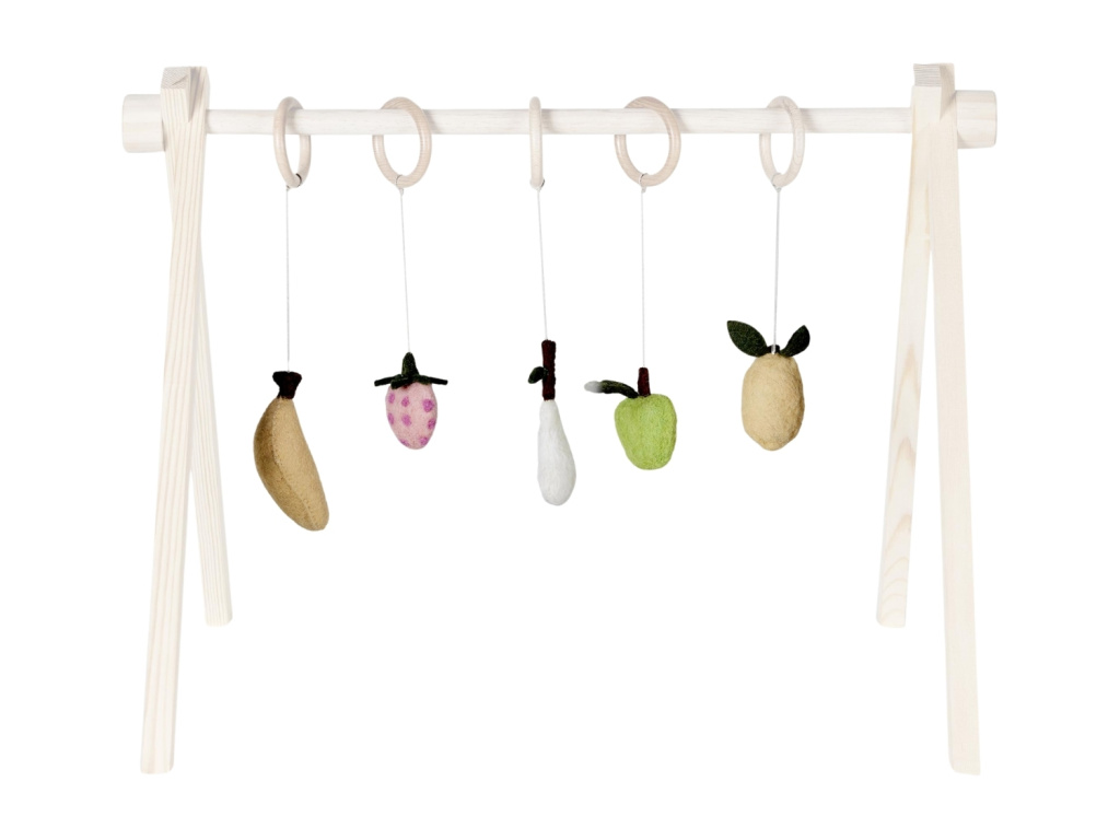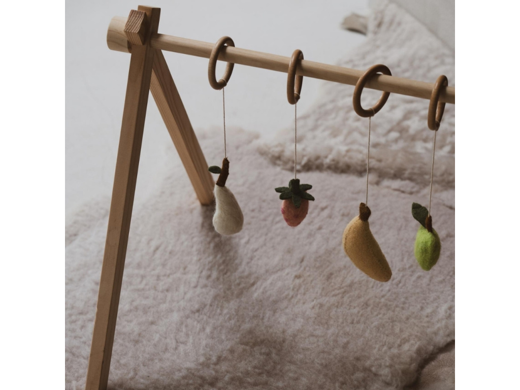 Sada závěsných dekorací s ovocem od značky Quax je kouzelnou dekorací, která zaujme každé miminko. Pět roztomilých druhů ovoce zavěšených na jemných lankách jsou kompatibilní s dřevěnou hrazdičkou Activity, na které se budou lehce vznášet ve vzduchu a během toho si vaše miminko bude rozvíjet zrakové vnímání. Hračky jsou také navrženy i pro samostatné použití, což poskytuje pestrou škálu zábavy a objevování. Sada je vyrobená z materiálů vhodných pro děti – jsou bezpečné a vhodné pro zvědavé malé ručičky.