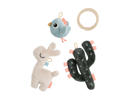 Kouzelné hračky Tiny Croco od Done by Deer jsou perfektní startovací sadou pro miminka již od narození. Roztomilý krokodýl Croco zabaví děťátko pískavými zvuky a látkovými cedulkami, roztomilá mrkev zaujme šustivými zvuky listů, a je skvělá pro rozvoj jemné motoriky. Kousátko se strukturovaným povrchem zase pomůže od bolavých dásniček, až začnou růst zoubky. Sada hraček je ideálním dárkem k narození miminka.