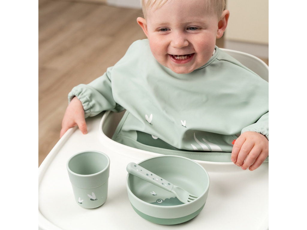 Sada plastových příborů Happy dots od Done by Deer rozzáří každé jídlo. Příbory jsou vyrobeny z potravinářského plastu v zeleném designu s hravými tečkami. Sada je ideální volbou pro děti, které se učí samostatnému stravování. Zaoblené hrany a jednoduché tvary umožní snadný úchop dětským ručičkám. Sada obsahuje lžičku, vidličku a nůž - prostě vše, co je potřeba pro malého jedlíka.