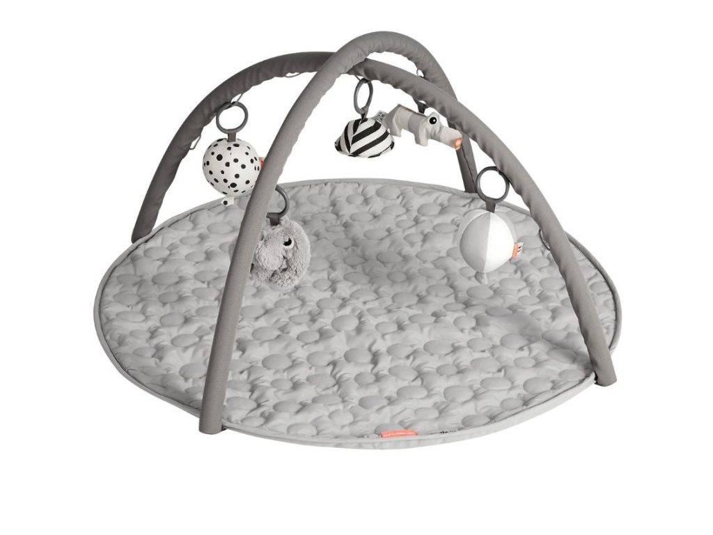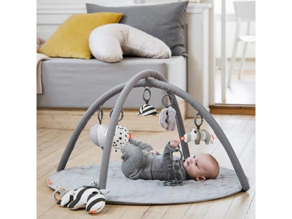 Zábavná prostorná hrazdička Done by Deer bude děti bavit, rozvíjet jejich fantazii, jemnou motoriku a soustředění. 13 různých pozic pro zavěšení hraček a prošívaná hřejivá podložka zajistí pohodlí a klid na ničím nerušenou hru se zvířátky a tvary. Součástí balení je krokodýl Croco, který při doteku šuští, sloník Elphee chrastí a balónky mají zvuk zvonečku.