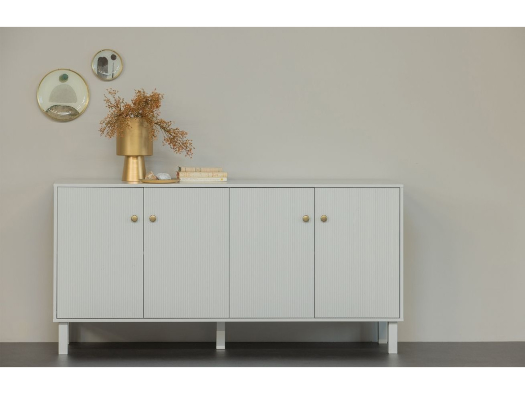 Stylová komoda Madine je vyrobena z borovicového dřeva, které je ozvláštněno kovovými úchytkami mosazné barvy. Její šedý odstín jí dodává nadčasový vzhled a umožňuje ji zakomponovat i do barevnějších interiérů. K výrobě komody bylo použito dřevo z šetrně obhospodařovaných lesů, které získalo certifikaci FSC. Komoda disponuje čtyřmi dvířky, za každou dvojicí dvířek se nacházejí dvě prostorné police. V sérii Madine najdete více designově sladěných produktů, kterými můžete interiér vkusně sladit.