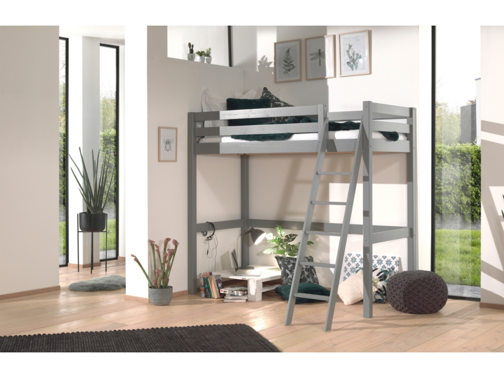 Šedá patrová postel Vipack Pino Mezzanine je vyrobená z masivního dřeva ze skandinávské borovice. Praktický žebřík s širokými schůdky je umístěn do pravé části postele, a je zároveň nakloněn do prostoru, což umožňuje pohodlnější výstup. Vysoké zábrany zajistí bezpečí, nemusíte se tak bát pádu z postele. Místo pod postelí ušetří prostor v pokoji – můžete sem umístit například psací stůl, pohovku, nebo využít jako místo pro ukládání věcí. Postel se skvěle hodí do méně prostorných dětských a studentských pokojů.