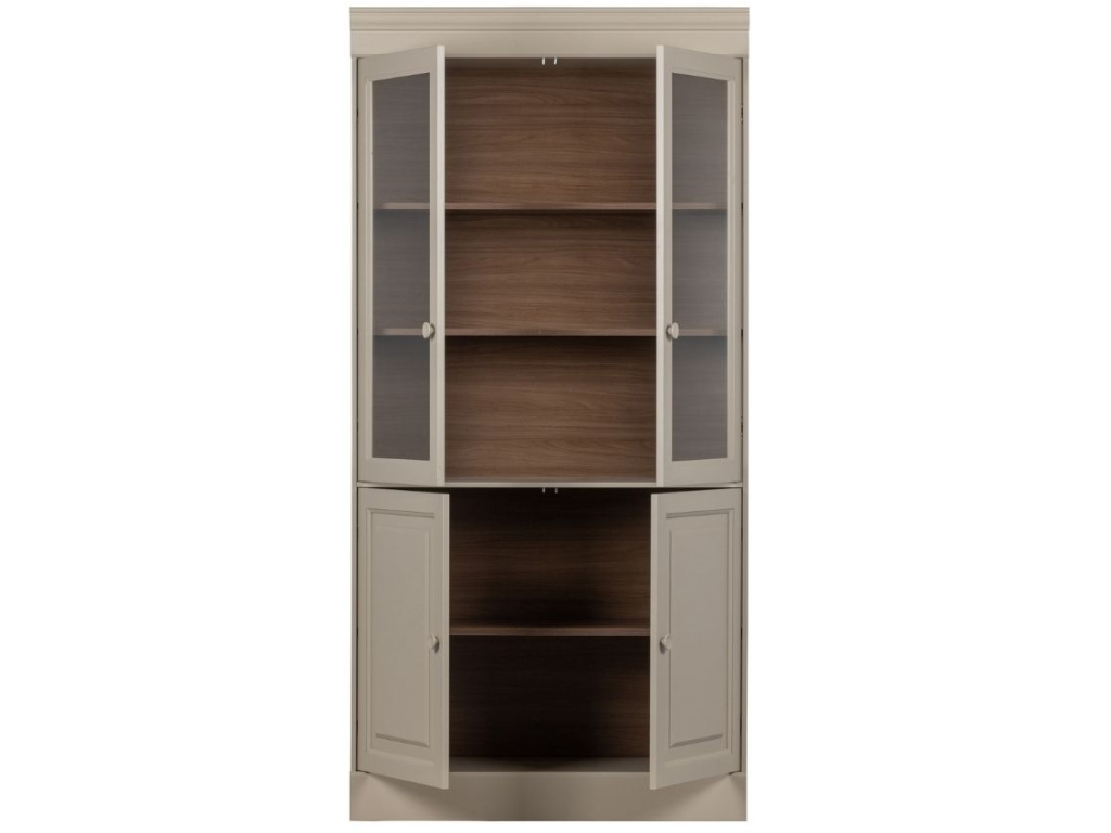 Elegantní štíhlá vitrína Chowie se čtyřmi dvířky v sobě skrývá dostatek prostoru rozděleného do pěti poliček. Prosklená dvířka umožňují vystavit na obdiv například oblíbený porcelán nebo sbírku trofejí. Borovicové dřevo v atraktivním šedém odstínu skvěle zapadne do světlých interiérů.