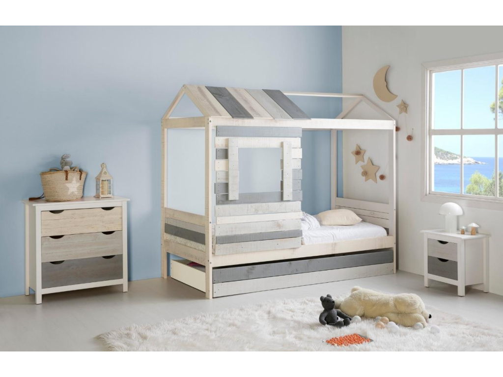 K posteli Sia od značky Marckeric můžete zakoupením této prostorné zásuvky přidat úložný prostor, který skvěle poslouží jako úschovna pro lůžkoviny nebo do ní mohou děti sklízet své hračky. Zásuvka je vyrobena kombinací borovicového dřeva s materiálem MDF.