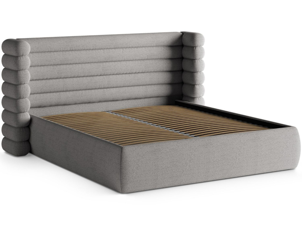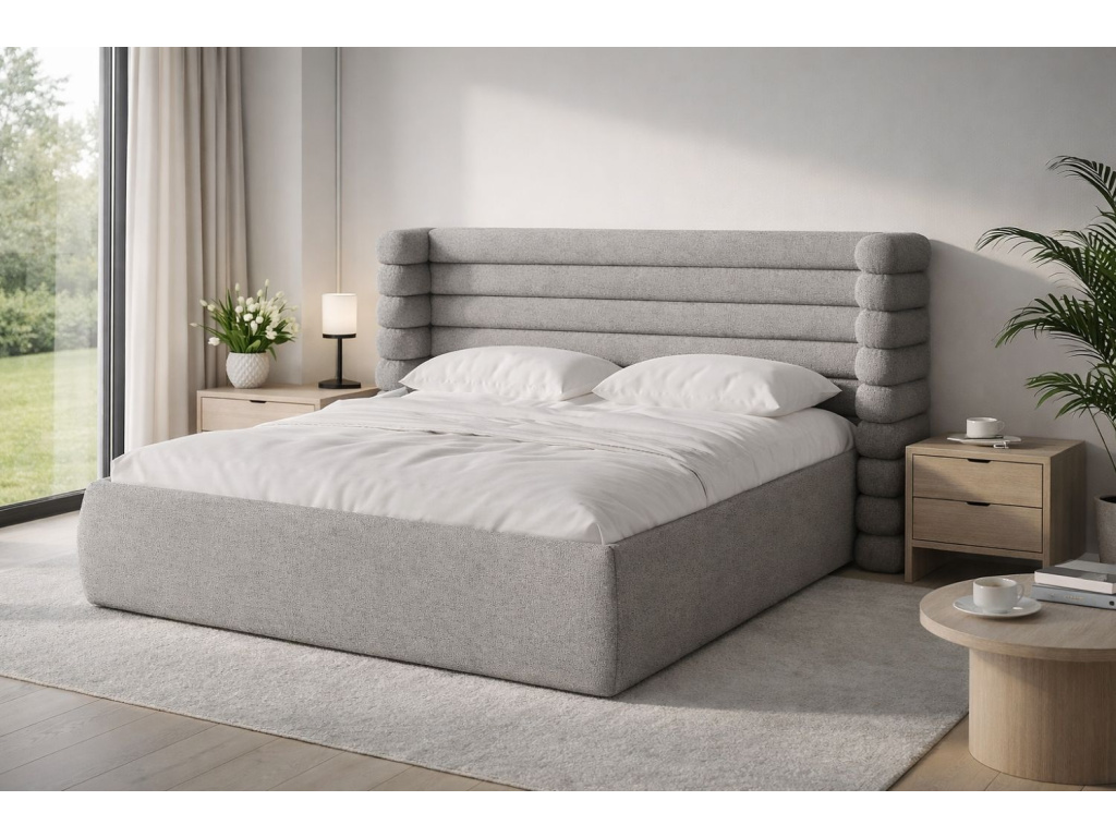 NakupovatŠedá bouclé dvoulůžková postel MICADONI Mount 160 x 200 cm