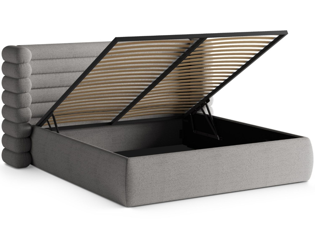 Postel Mount je výrazným designovým prvkem, který v ložnici okamžitě vytvoří pocit útulnosti a klidu. Její ikonické čelo s měkkým, plastickým tvarováním připomíná vrstvy jemné pěny a v kombinaci s bouclé látkou působí hřejivě a příjemně. Tvarovaná opěrka hlavy s bočními „křídly“ dodává posteli charakter a zároveň vytváří pocit většího soukromí. Čalounění z látky Coral zaujme bohatou strukturou, jemným leskem a hebkým povrchem, který je příjemný na dotek i vhodný pro každodenní používání. Pod matrací se nachází praktický úložný prostor, do kterého se snadno dostanete jednoduchým nadzvednutím roštu. Postel Mount se hodí do moderních, skandinávských i minimalistických interiérů a je dostupná v různých rozměrech, barevných variantách i typech látek.