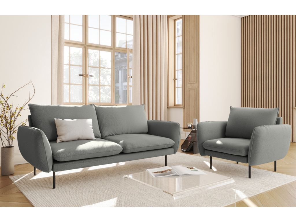 Pohovka Vienna od Cosmopolitan Design je poctou nadčasové eleganci, smyslu pro detail a dokonale vyváženým proporcím. Jemně tvarované opěrky, měkké polštáře a ladná silueta jí propůjčují lehkost, která zaujme na první pohled. Kontrastní černě lakovaná kovová podnož dodává celku vizuální vzdušnost a současně zajišťuje stabilitu. O vaše pohodlí se postará příjemné bouclé čalounění, které vás doslova pohltí a zaoblené područky vám poskytnou nadměrný komfort při sezení. Na výběr je ze tří pečlivě vybraných odstínů, které se snadno sladí s jemně minimalistickým interiérem i s odvážnějšími koncepty. Vienna vždy zapadne s lehkostí a zároveň dodá prostoru výraz. A protože každý domov má jiné potřeby, kolekce Vienna je k dispozici v několika velikostech – od kompaktních modelů ideálních do menších bytů až po velkorysé pohovky, na které se vejde celá rodina i s chlupatým parťákem.