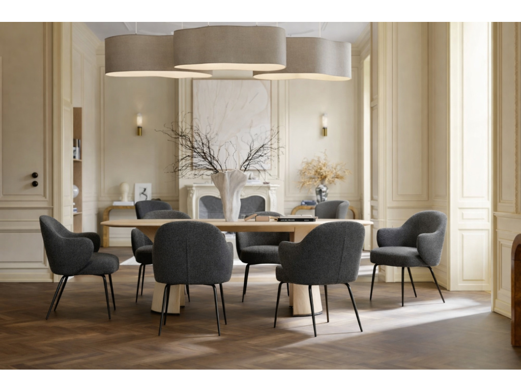 Značka DAN-FORM přichází s jedinečnou řadou židlí Bae, které se svým čistým jednoduchým designem zazáří v každém moderním interiéru. Stanou se skvělým doplňkem pro stylový jídelní stůl v domácnosti – využití ale najdou i v hotelových či komerčních prostorech. Se svým pohodlným polstrováním, čalouněním bouclé látkou a tvarem měkce zaoblených područek, které tvoří prodloužení zad, je židle Bae jedinečným designovým kouskem. Vybrat si ji můžete z několika barevných variant, aby dokonale splnila vaše vizuální preference.