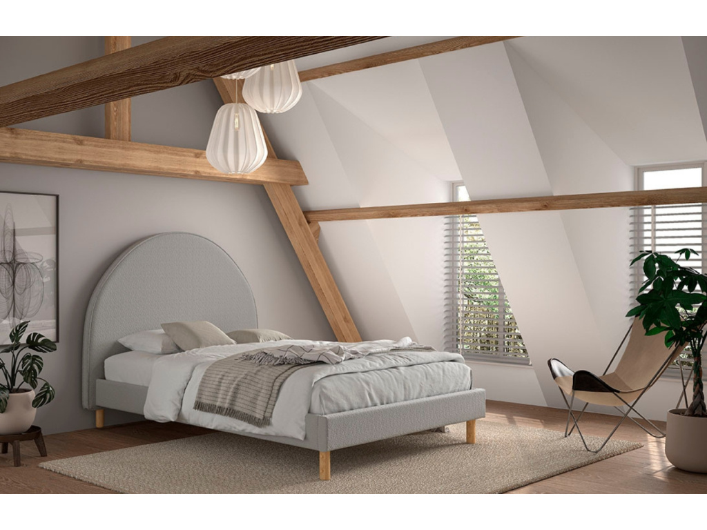 Dvoulůžková postel Moon od belgické značky Vipack oživí nejednu ložnici či dětský pokoj. Moon je vyrobena z MDF a čalouněna šedou bouclé látkou. Bouclé látka je velice příjemná a měkoučká na dotek a dodá posteli nádech luxusu a elegance. Postel je doplněna o borovicovou podnož, která doladí design celého kousku. Minimalistický tvar postele s oblým čelem ve tvaru půlměsíce vynikne v jakémkoliv moderním interiéru.